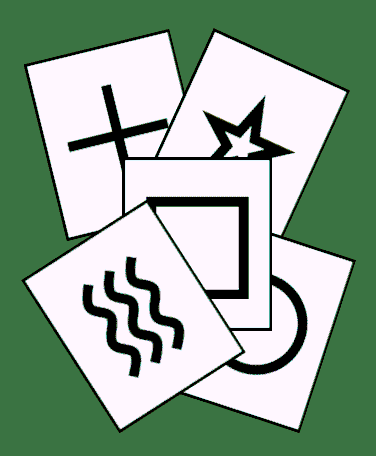 The targets used for these tests are the standard ESP Cards (sometimes called Zener Cards) as used by the parapsychologist J.B. Rhine in his classic studies of Extrasensory Perception. These show five different symbols.
